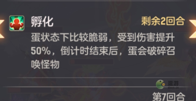 如下图,蛋的期间是比较脆弱的,且受到伤害提升50%。没打掉的话会变成怪物。