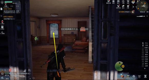 1、首先在莱顿小镇,可以看到一栋别墅,从这栋别墅的入口进入,再从入口左前方的窗户翻出来,出来之后,目光向左转90度,就会发现这里有一颗小树。