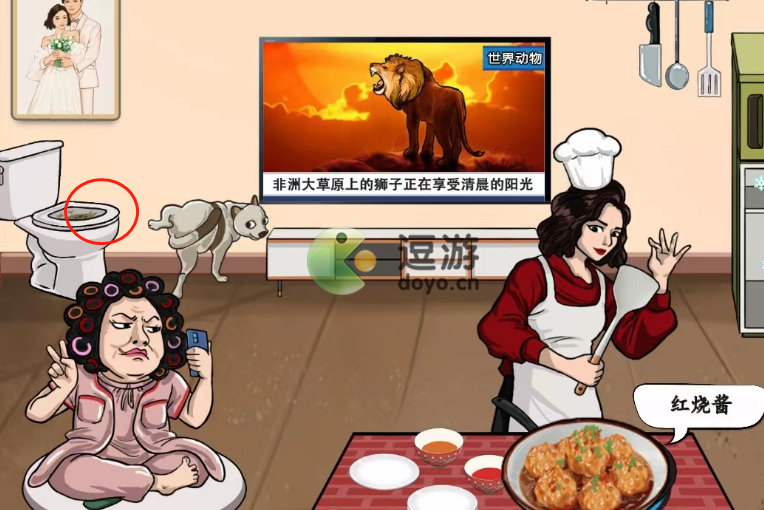 10、点击电视,拖动电视中的狮子头,获得红烧狮子头