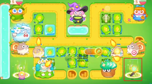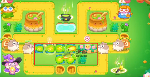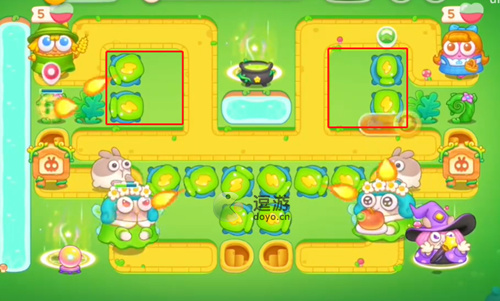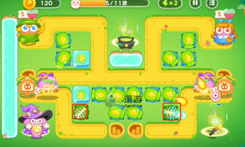 2、像这样清理掉周围的道具,继续继续增加瓶子,前几波先不管boss,清理道具,然后放置炮台即可。