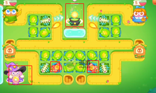 4、然后最好放几个减速炮台,配合鱼骨,开始清理boss的三个道具。