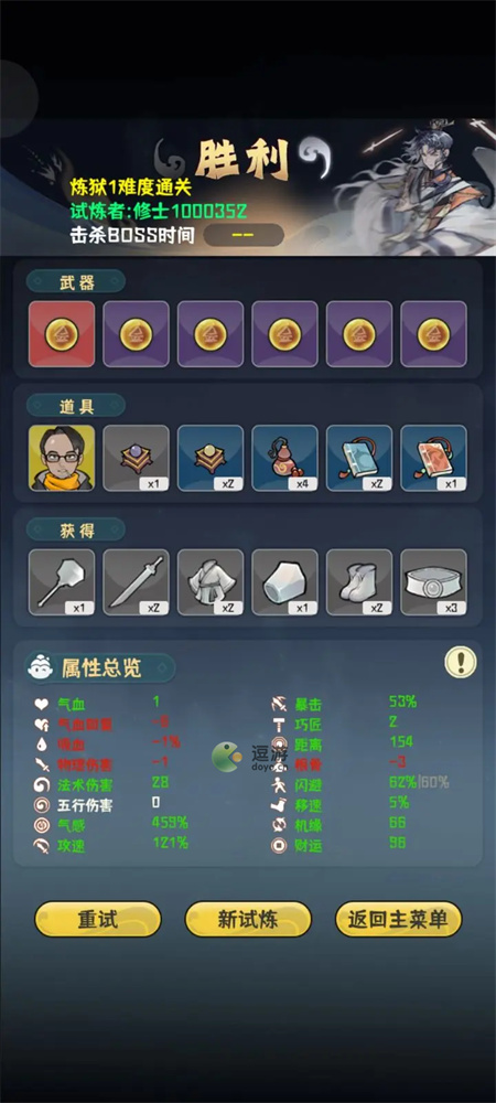 然后前期如果有装备属性足够可以先不考虑暴击优先攻速机缘距离,慢点打输出刷刷被动,至于装备就是有剑匣上剑匣没有就全金灵珠。