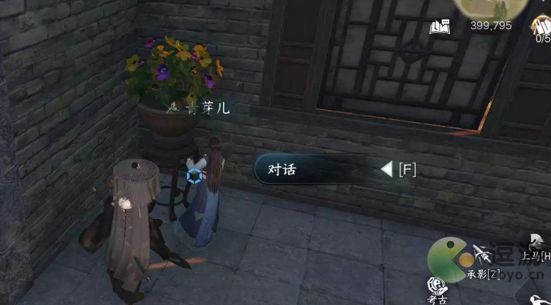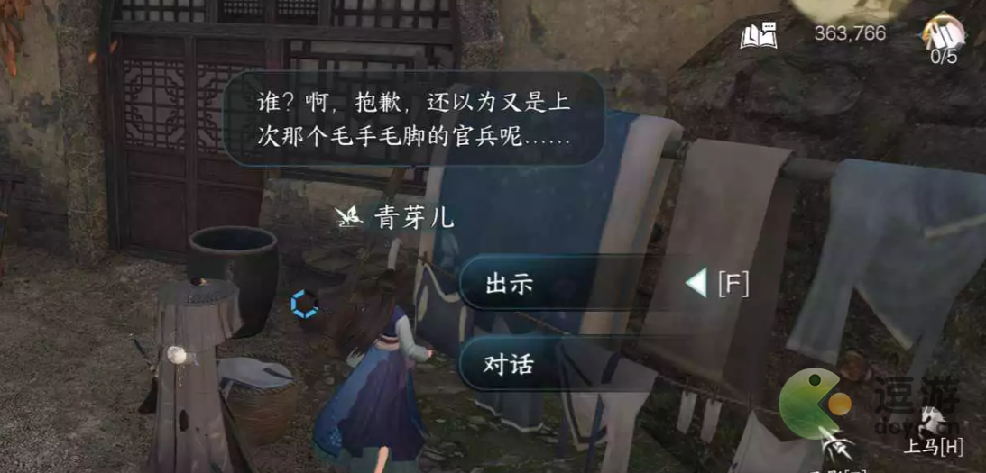 2、到雁门关399.795处向NPC“青芽儿”提交分类为“刀剑利器”的好感度道具,之后对话即可完成任务