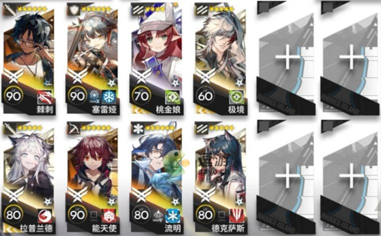 桃金娘↑极境←棘刺,德克萨斯(极境左边)↓塞雷娅,流明,拉普(不用带,下去立刻没了),能天使↓,接着挂机等通关即可。