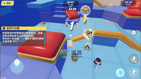 如果自己拿到了16分,最后可以来到下方倾斜的弹簧垫处等大金币刷新,只要再吃一个大金币就能完成这次比赛了。