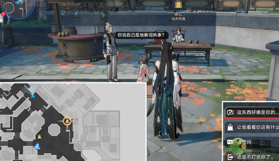 3、然后来到中间的广场,与永仁对话,选择【这东西好像是你的...】