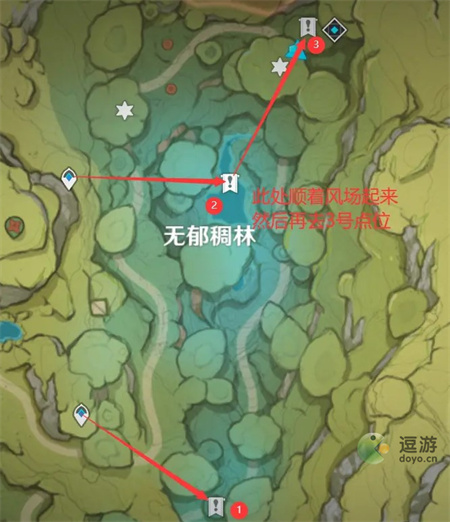 3.按照如图所示路线,雷元素攻击小精灵,然后开启旁边现形的机关即可。总之飞驰如风成就流程很简单,几分钟就能搞定。