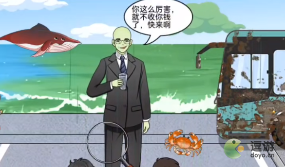 1、就挺秃然的海边游,需要把旅行团的价格打下来,首先点击男人的水杯3次,找到变异水和没鼻子