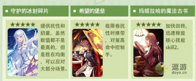 1、守护的冰封碎片:提供抗性和奶量,虽然数值都不是最高的,但是胜在均衡,可以应对大部分场景