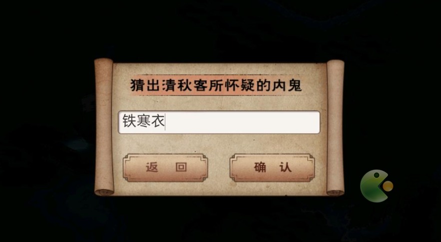 5、战斗后清秋客出现,击杀方姓商人后会问你叛徒是谁,此处填写铁寒衣/左使均可,获得500贡献。