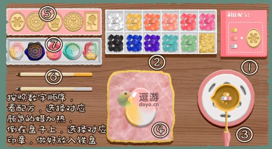 1、收纳物语【火漆封蜡】需要根据配方制作印章。首先查看配方,然后将相应的蜡放进容器里加热