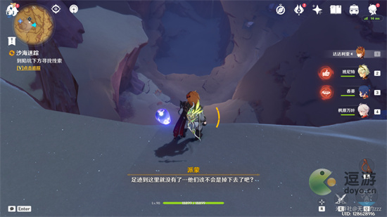 4.随后我们将继续跟着指引,我们成功找到了旅行团,随后我们要先和三个NPC对话