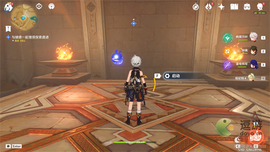 12.随后我们坐着电梯,来到我们的最底下处,我们需要利用雷元素,是三成种子活化,随后点亮火把,开启我们的机关