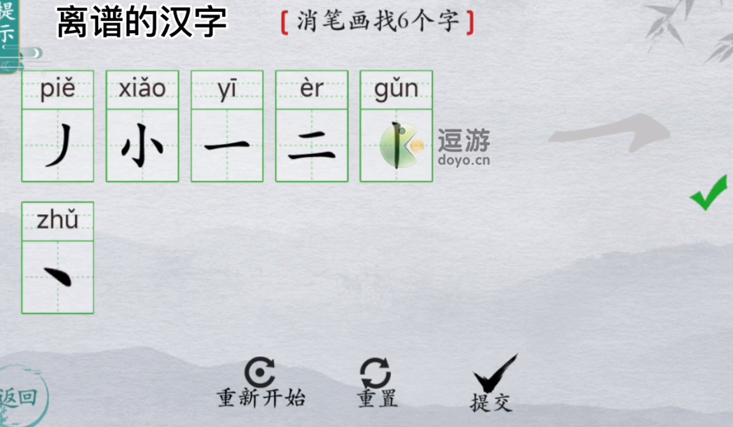 离谱的汉字玺消笔画找6个字怎么过