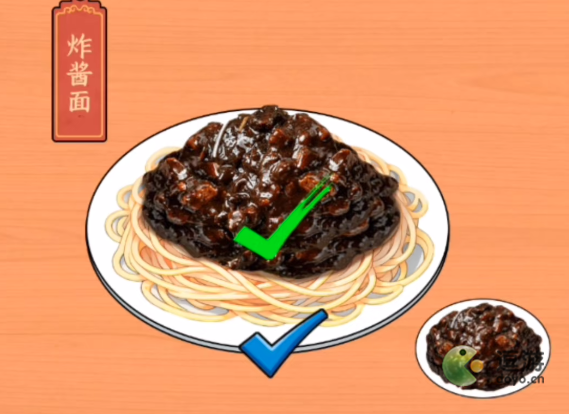 11、炸酱面,拖动豆瓣酱到干黄酱位置合成炸酱,左滑将炸酱拖到炸酱面上。