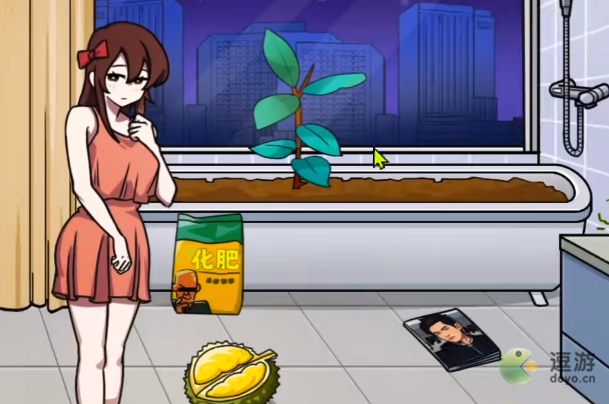 3、拖动化肥和榴莲至马桶获得金坷垃,将金坷垃拖动给树苗