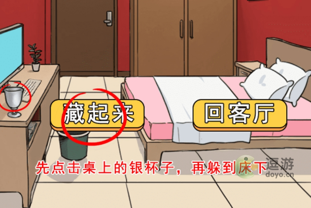 7、进入卧室先点击桌上的银杯子,再躲到床底下