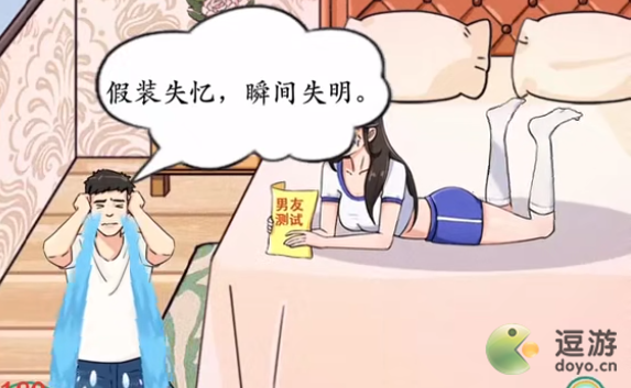 1、疯狂梗传男友测试,需要完成男友测试问答,首先问题1:宝宝你是不是去医院了,哪里不舒服?