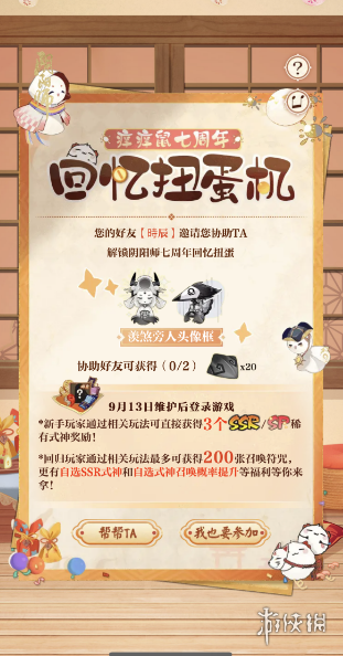 在阴阳师游戏中七周年活动已经上线了,其中有一个七周年趣味答题,答对可以自选式神碎片,想必有一些大人还不清楚在哪参与,下面就让小编为各位大人带来七周年趣味答题玩法位置介绍,一起来看看吧。