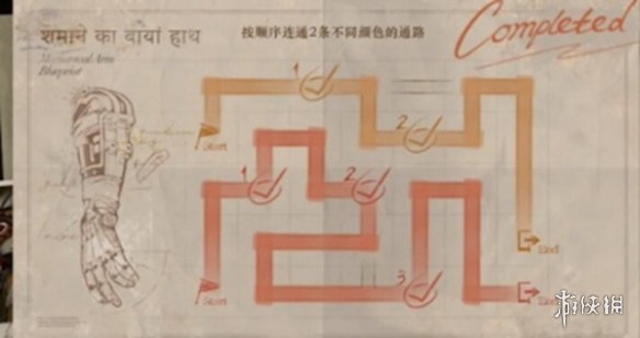 4、最后在3处往上方出发,再往右方,最后往下方再往右方到达终点即可。