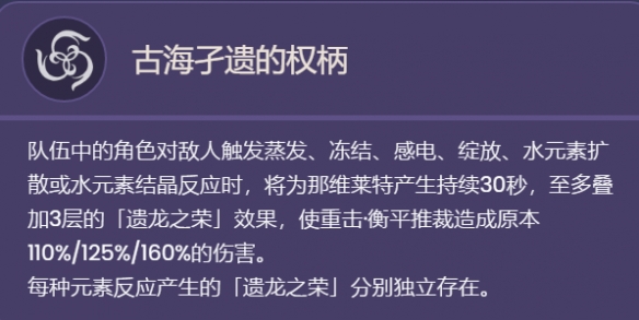 每隔一段时间,在降下汹涌的水瀑后,将降下穿透敌人的灵息之刺,造成具有芒性的水元素伤害。