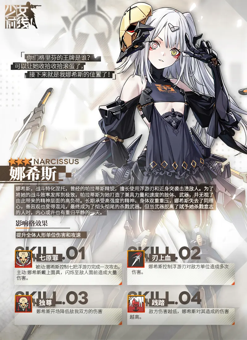 “阿佛那斯·塔底平台”即将开启,三星融合势力单位-娜希斯即将登场!那么少女前线娜希斯怎么样?下面就由小编给大家带来三星融合势力娜希斯技能一览,希望能给大家带来帮助。