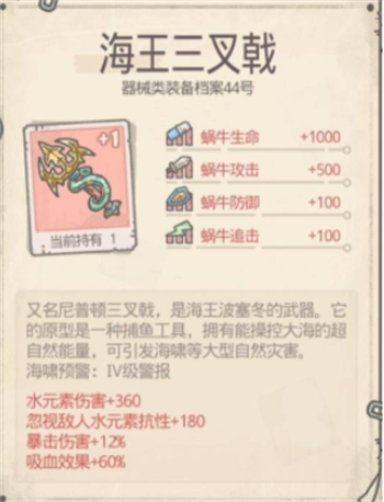 1、海王三叉戟:提供水元素伤害,忽视敌人抗性。
