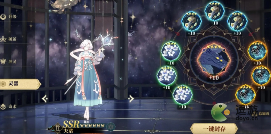 1、灵器选择:天位置首选竹见套装(增加格挡概率),赤芒套装(适当弥补速度)。