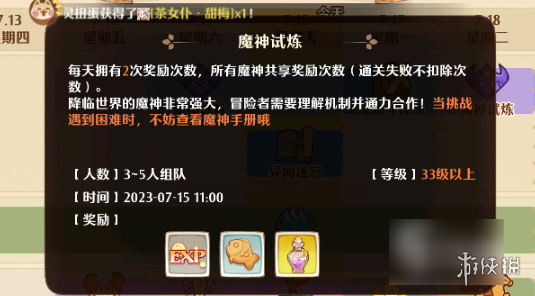 1、魔神试炼会在每周六和周二11点开放,玩家只需求在规则时刻内前往玩法板块,就能够直接参加魔神试炼。