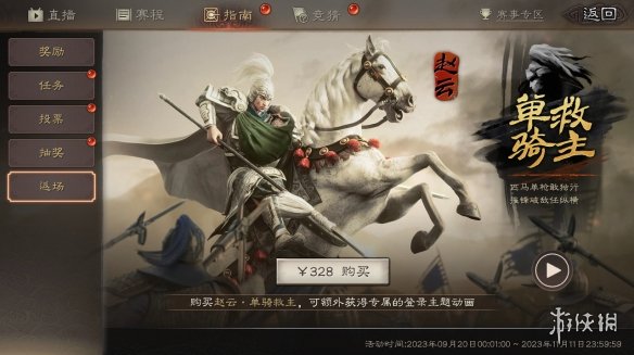 在9月20日00:00:00-11月11日23:59:59期间,“武将皮肤:赵云·单骑救主(永久)”将以328元直售形式返场。主公购买后即可在战报、武将展示、登录界面、个人界面等界面显示。(*该皮肤无属性加成)