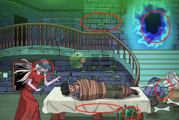 1、进击的汉字别墅惊魂-不对劲的地方是:水渍、白酒、单车、窗户、相框、流浪汉、女鬼、餐桌、毒药、死者遗物、轮回门、墙面