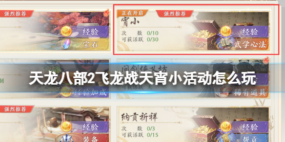 天龙八部2飞龙战天宵小活动怎么玩?游戏中的宵小活动这个到底是怎么玩的,很多玩家还玩不明白,下面就跟着小编一起来了解一下天龙八部2飞龙战天宵小活动的玩法吧。