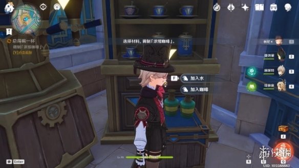 5、再次对话,制作一杯特制咖啡,材料可随意选择。
