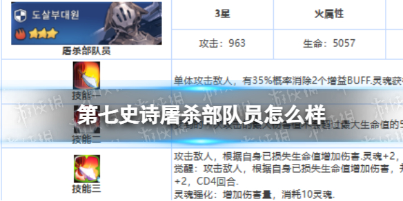 第七史诗屠杀部队员怎么样?屠杀部队员是游戏中的三星角色,不少小伙伴想了解该角色,下面小编为大大家带来了三星英雄屠杀部队员的介绍,一起来看看吧。