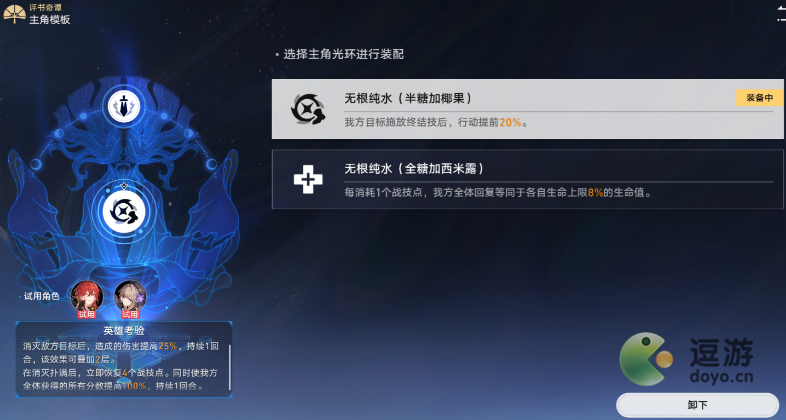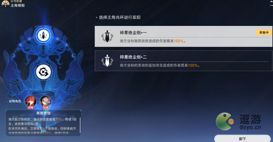 1、首先在这个活动中我们可以选择主角光环,第一折中可以选择两个主角光环