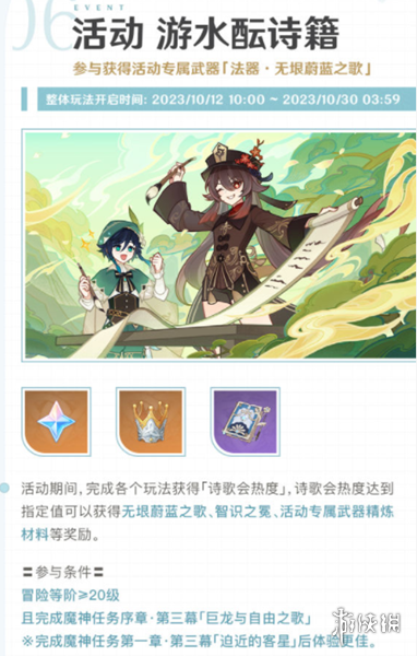 二、参与条件:冒险等阶≥20级,并且完成魔神任务序章·第三幕“巨龙与自由之歌”。