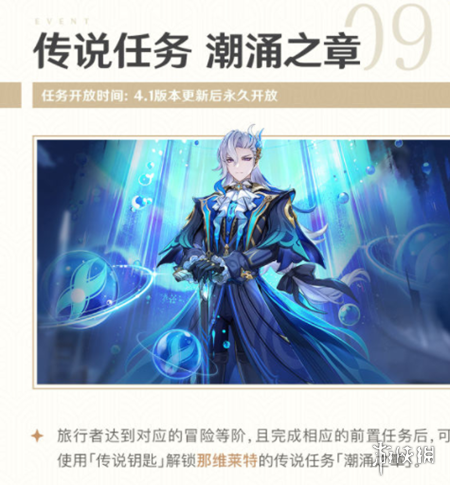 3、活动内容:完成前置任务后,可使用“传说钥匙”解锁那维莱特的传说任务“潮涌之章”。