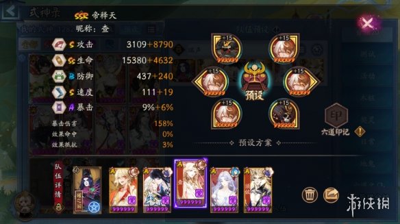 四速因幡 火灵 攻攻爆(指标攻击,设置爆伤低于sp面,例:280爆伤后堆攻击)