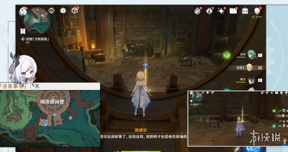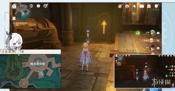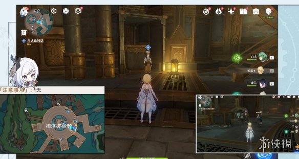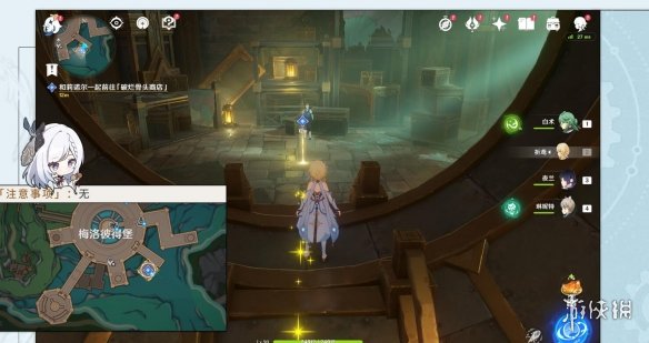 4,然后与莉诺尔对话,跟随她一起参观梅洛彼得堡。(跟随指示行动即可,比如击打拳击桩,普攻一下即可)