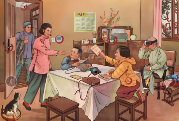 1、八零旧景不合理包括:摄像头、指纹锁、扫地机、开关、游戏机、羽绒服、猫罐头、电子钟、VR眼镜、无人机(长按三秒窗帘)、吹风机、旋转椅
