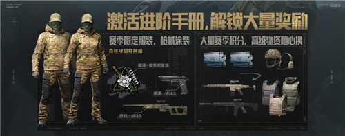 全新赛季进阶手册上线,激活进阶手册解锁赛季限定服装、枪械喷漆,大量赛季积分,高级物资随心换!