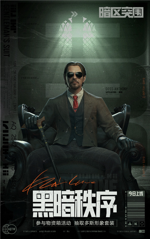 备受关注的《暗区突围》军需抽奖活动「黑暗秩序」已于今日正式上线。在军需抽奖的奖池内有几率获取完整的“多斯西服”套装,还有秩序·F2000枪械涂装、秩序·装备涂装组合、绅士·头部装扮组合、秩序·FA便携等丰厚奖励,供先锋们前来获取。此外,先锋还有机会解锁多斯的语音!