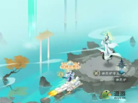 7、往秘境右边走,点击通道上的剑,然后解开迷雾,和神药护卫战斗(可获得500仙晶)后从神药炉里面拿走神丹。