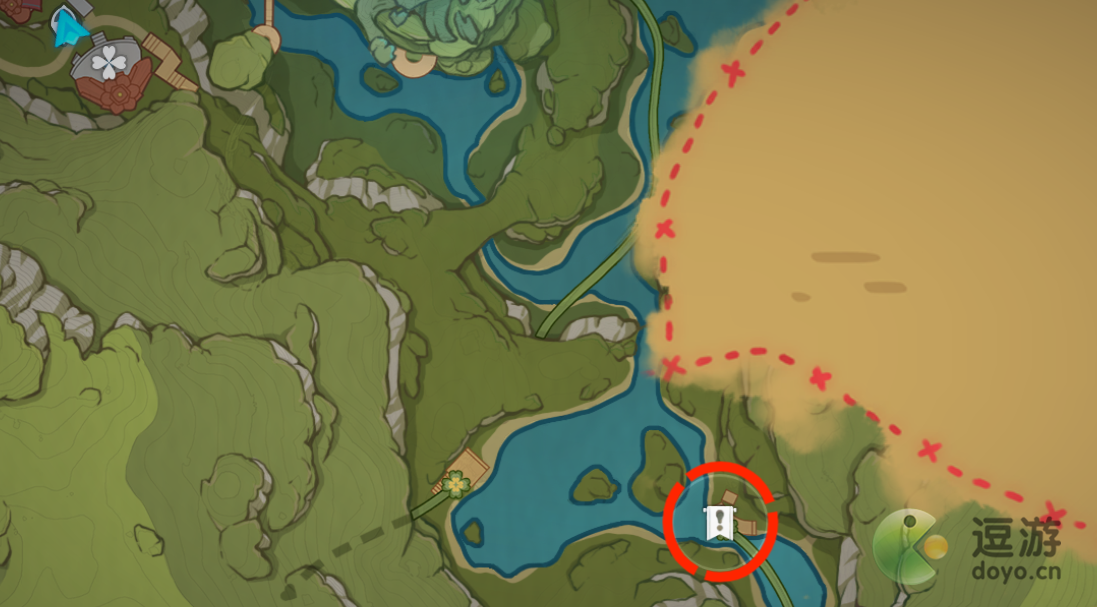 1、在图示红圈处乘坐『呼呼飞车』进入洞穴