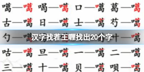 汉字找茬王是一款比较有难度的文字游戏,还有不少小伙伴不知道汉字找茬王喱找出20个字小编为大家带来了相关攻略的介绍,感兴趣的小伙伴和小编一起来看看吧。