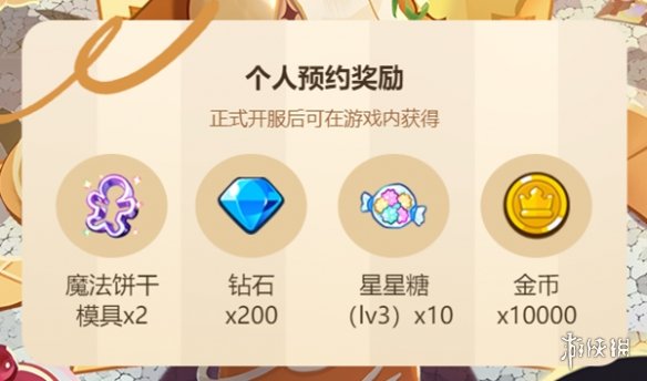 1、完成预约就能获得2个魔法饼干、200个钻石、10个lv3星星糖以及10000金币。
