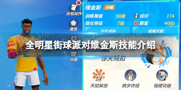 以上就是关于全明星街球派对维金斯技能介绍的全部内容了,希望能够帮助到各位玩家。更多游戏相关的内容各位玩家们可以关注腾云网,会一直给各位玩家们带来手游攻略!