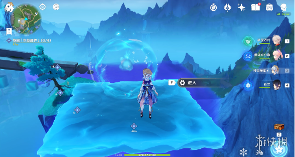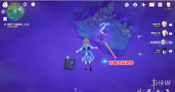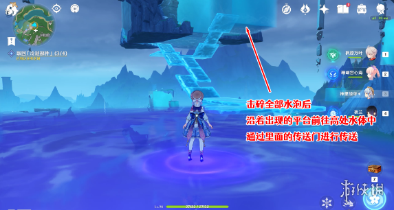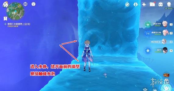 1、玩家首先前往冷凝部件在的水体位置,将水泡打掉。