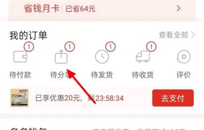 2. 接着在我的页面里我的订单下找到“待分享”,在上面点击打开。