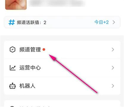 3. 这时页面下方会弹出一个窗口页面,在其中点击选择“频道管理”这一项。